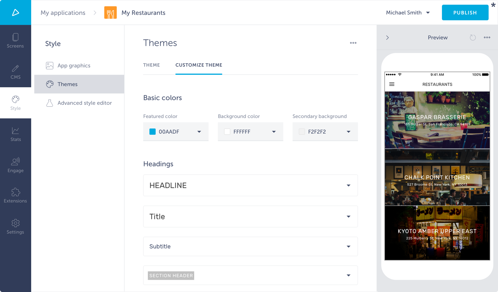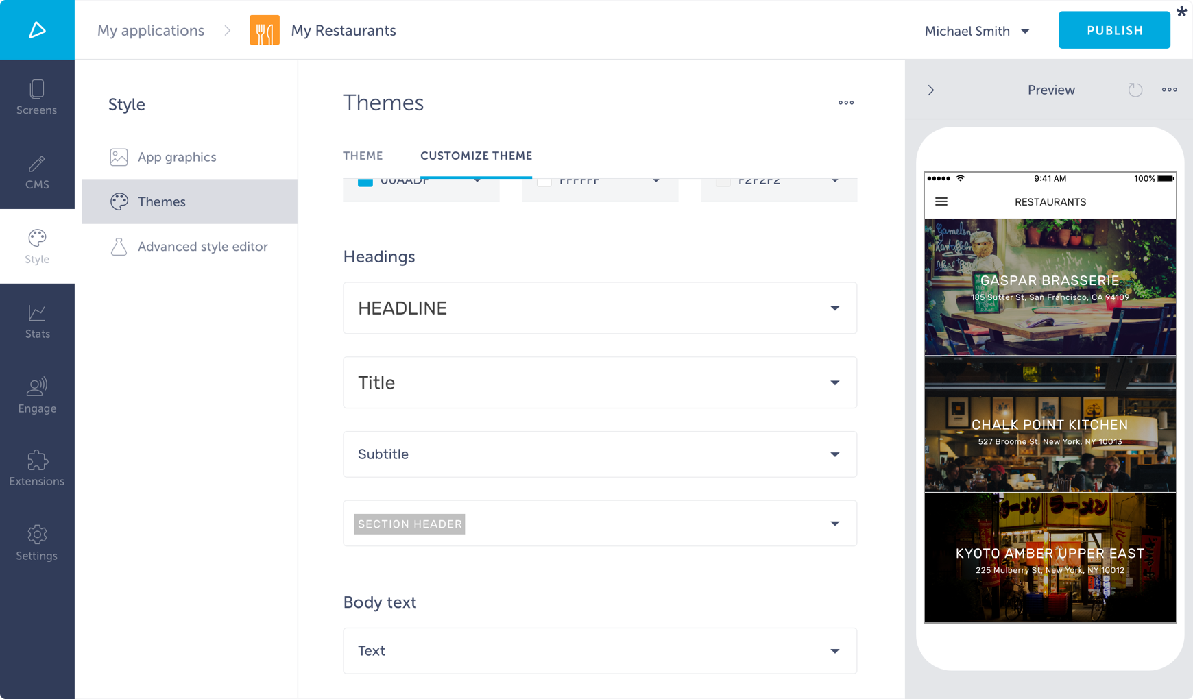 Adjustment of theme is done through theme variables. These variables can be set through Shoutem builder, which interprets the variables schema.